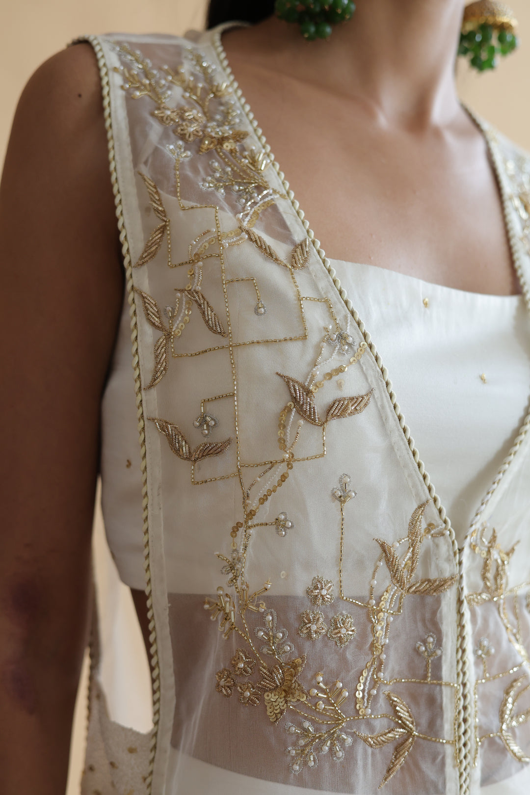 Ivory Georgette Co-Ord Set with Resham -Thread & Stone Embroidery