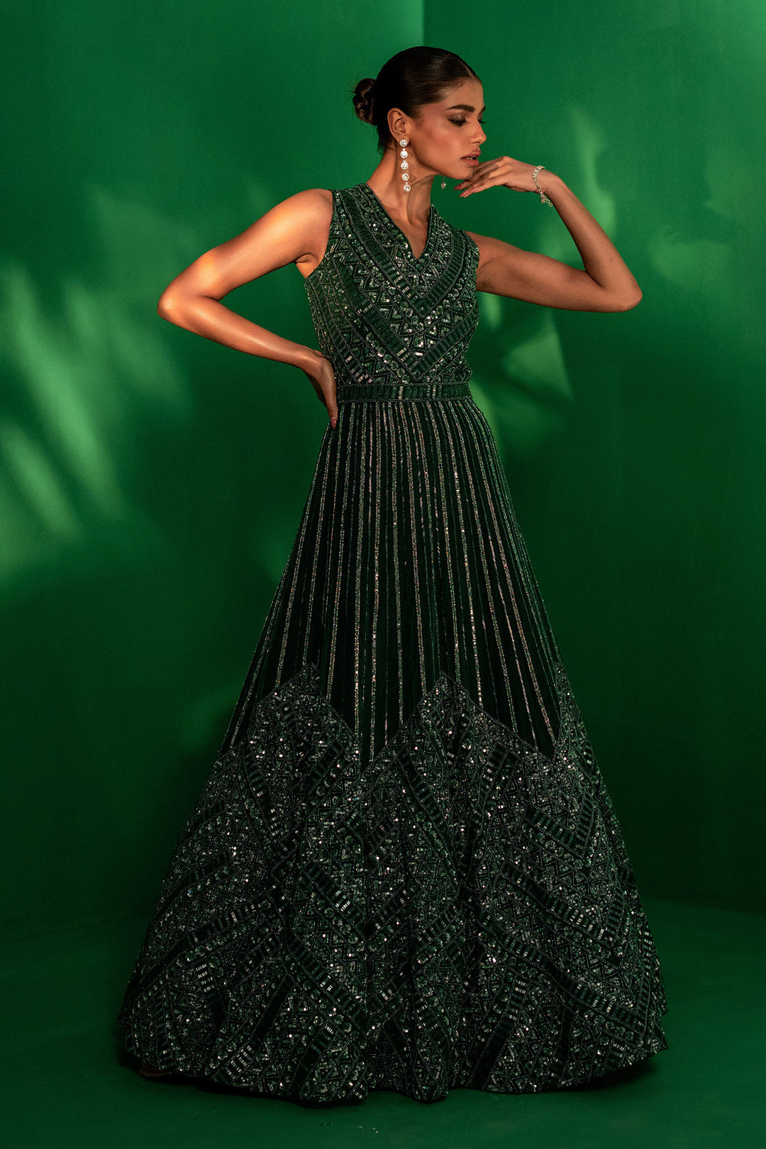 Green Silver Embroidered Anarkali with Dupatta ( READY TO SHIP )