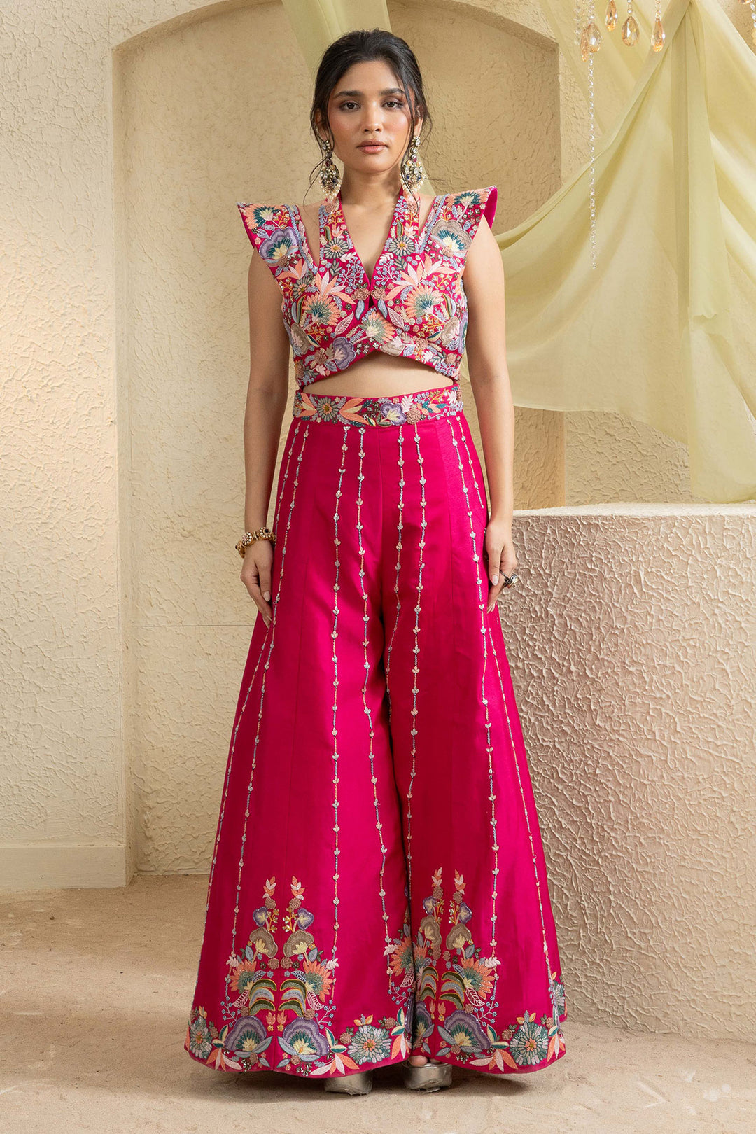 IVORY THREAD AND SEQUIN TEXTURED HALTER SHARARA SET