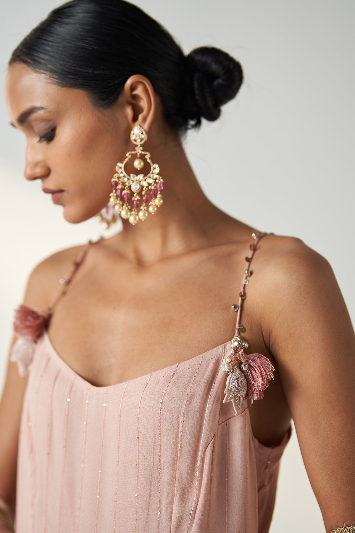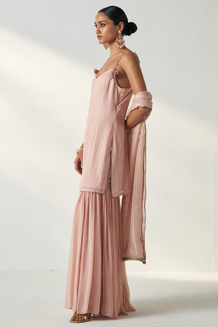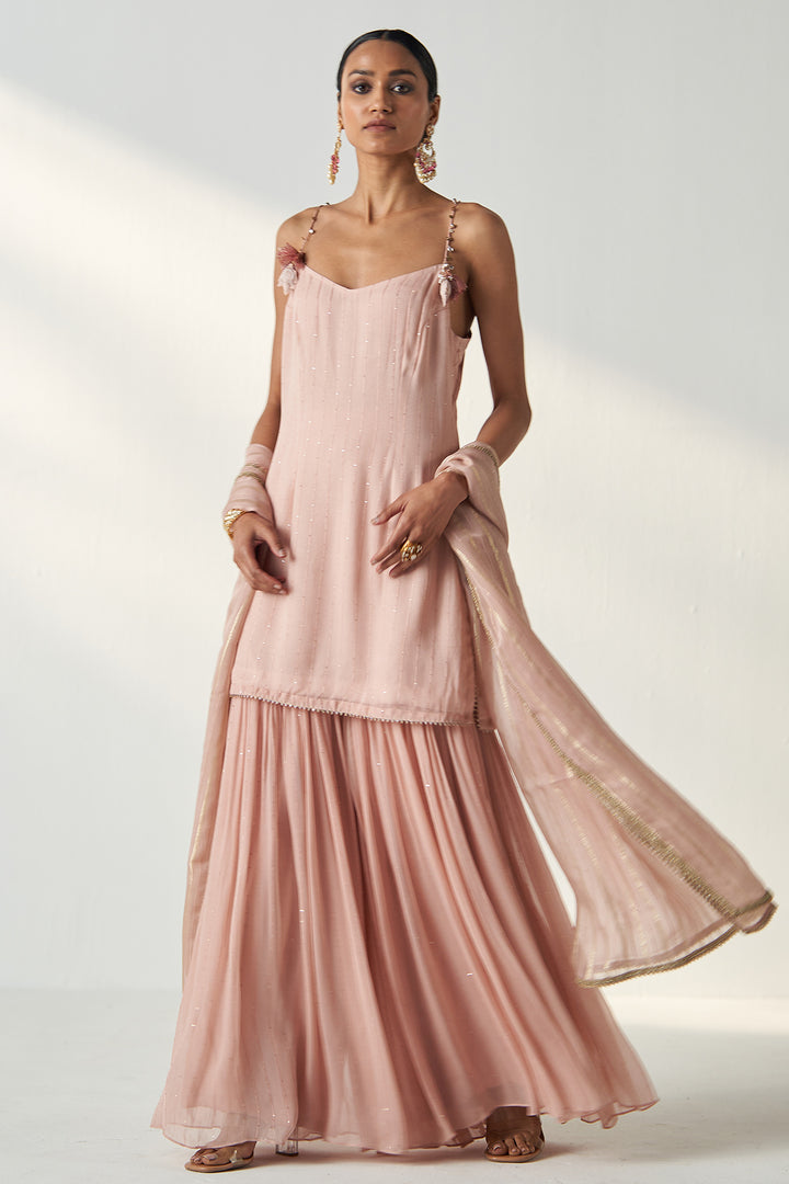Blush Pink Kurta Sharara Set With Gota & Tassel Detailing