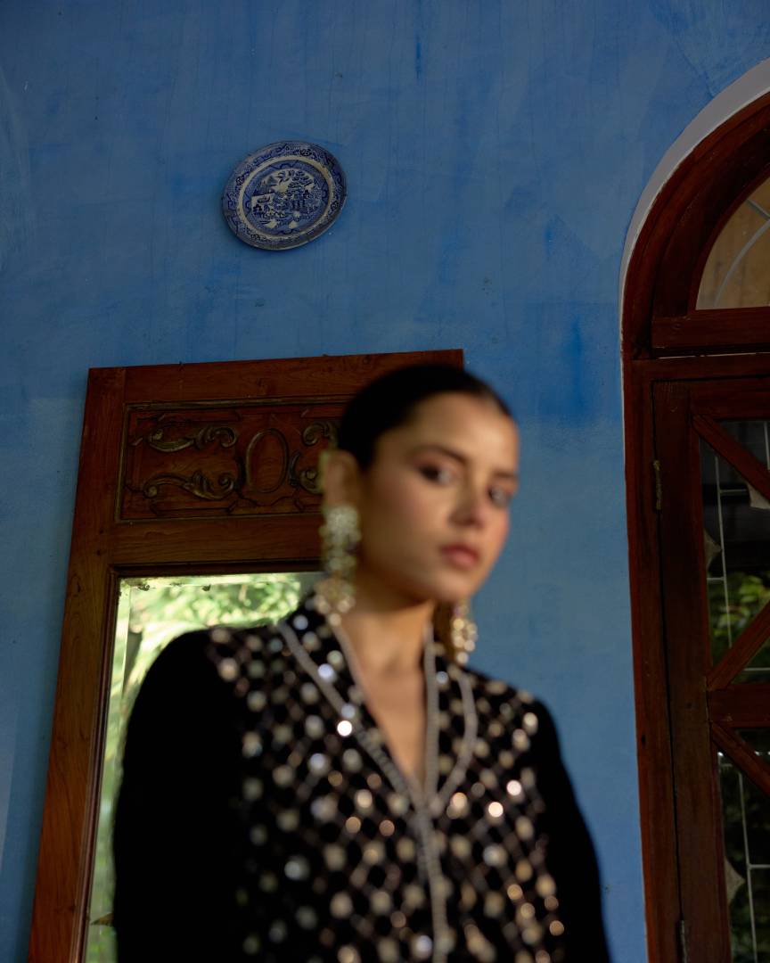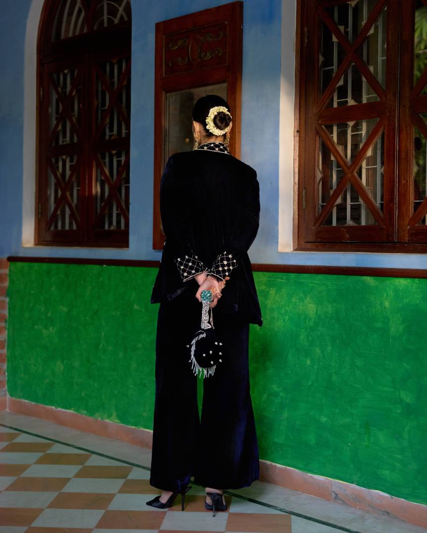 Midnight Elegance Embroidered Velvet Coat Jacket Set