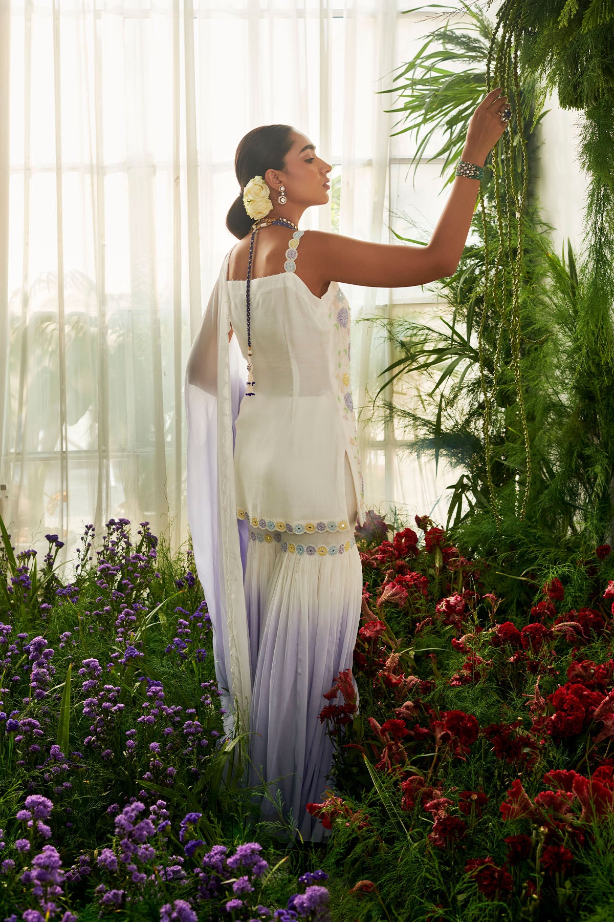 White & Lavender Georgette Hand-Embellished Gharara Set